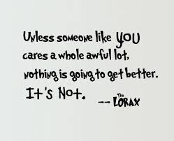 So today, I'm going to share one of my favorite quotes. It's from the Dr. Seuss movie The Lorax. Granted, I've never seen the movie, but I heard the quote once and it's stuck with me...